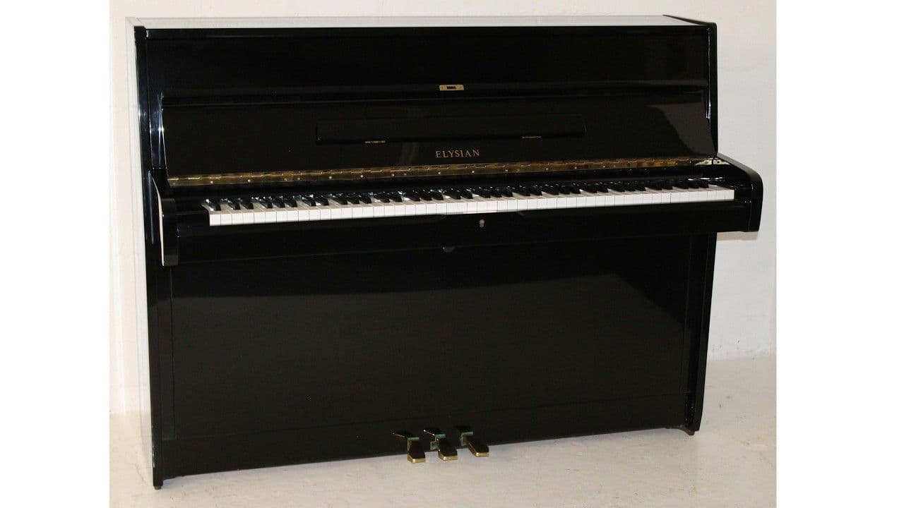Elysian 107cm modern upright piano in Black polished c1986 secondhand