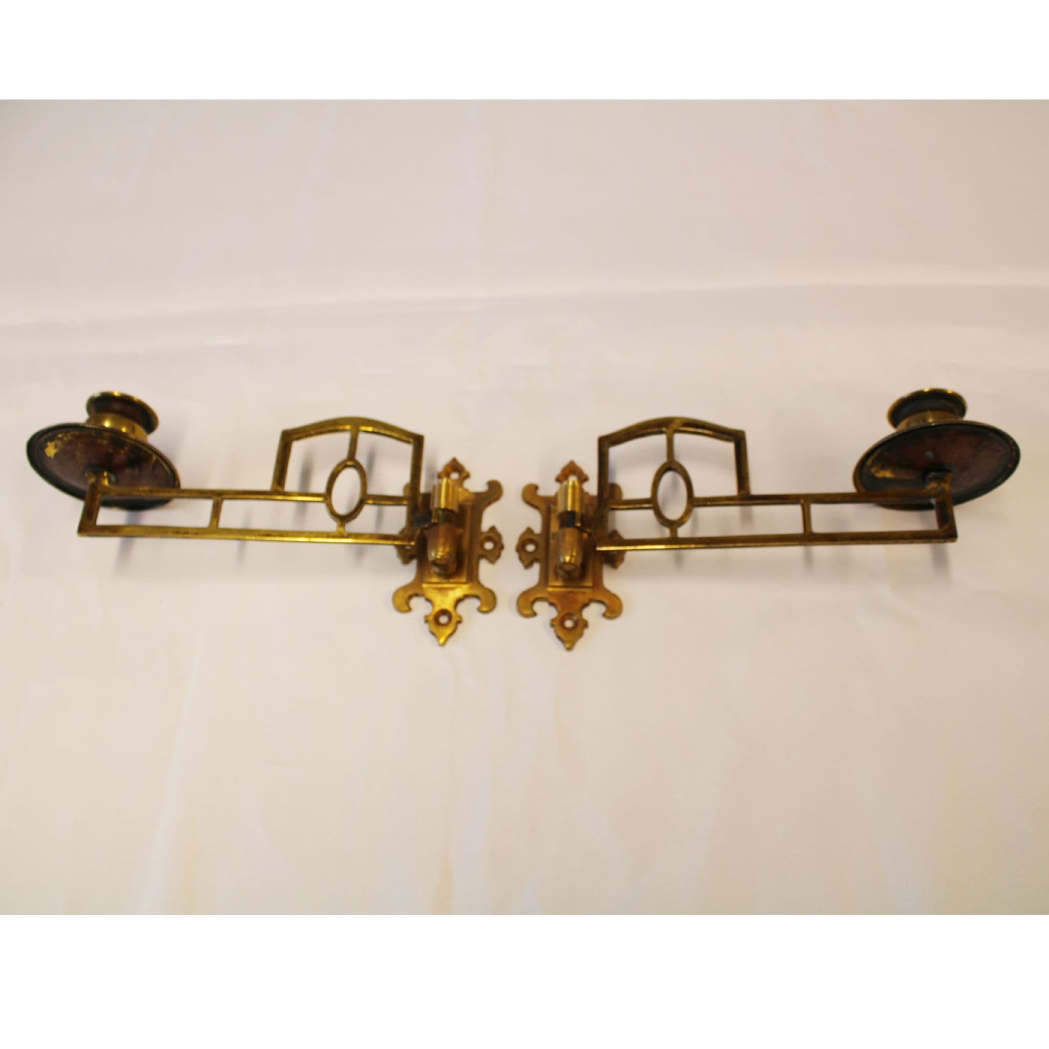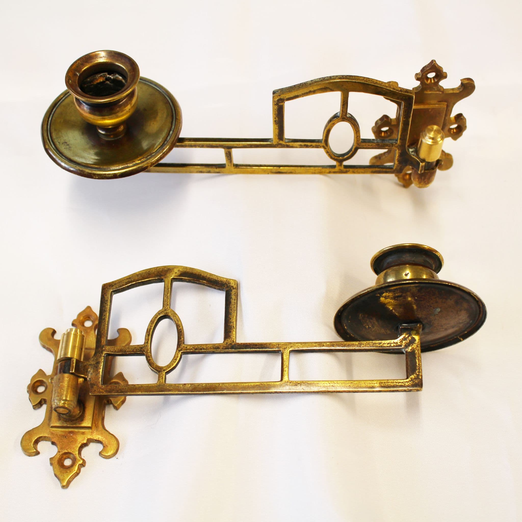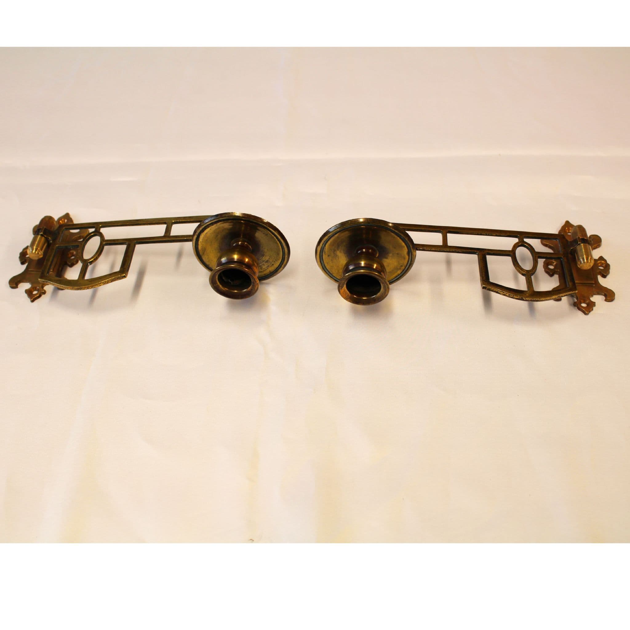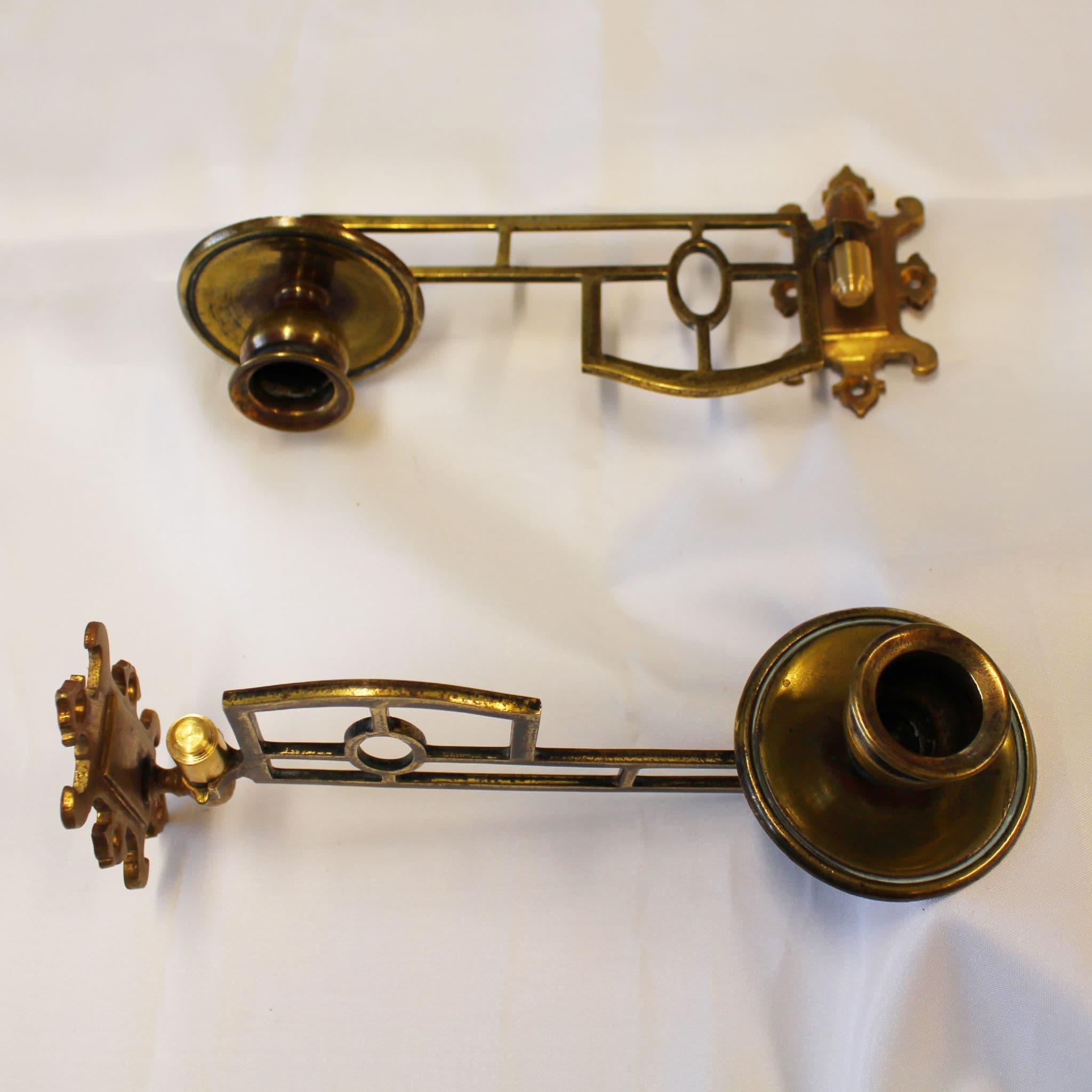 Antique brass candle sconces for upright pianos or can be used as wall lights c1900.